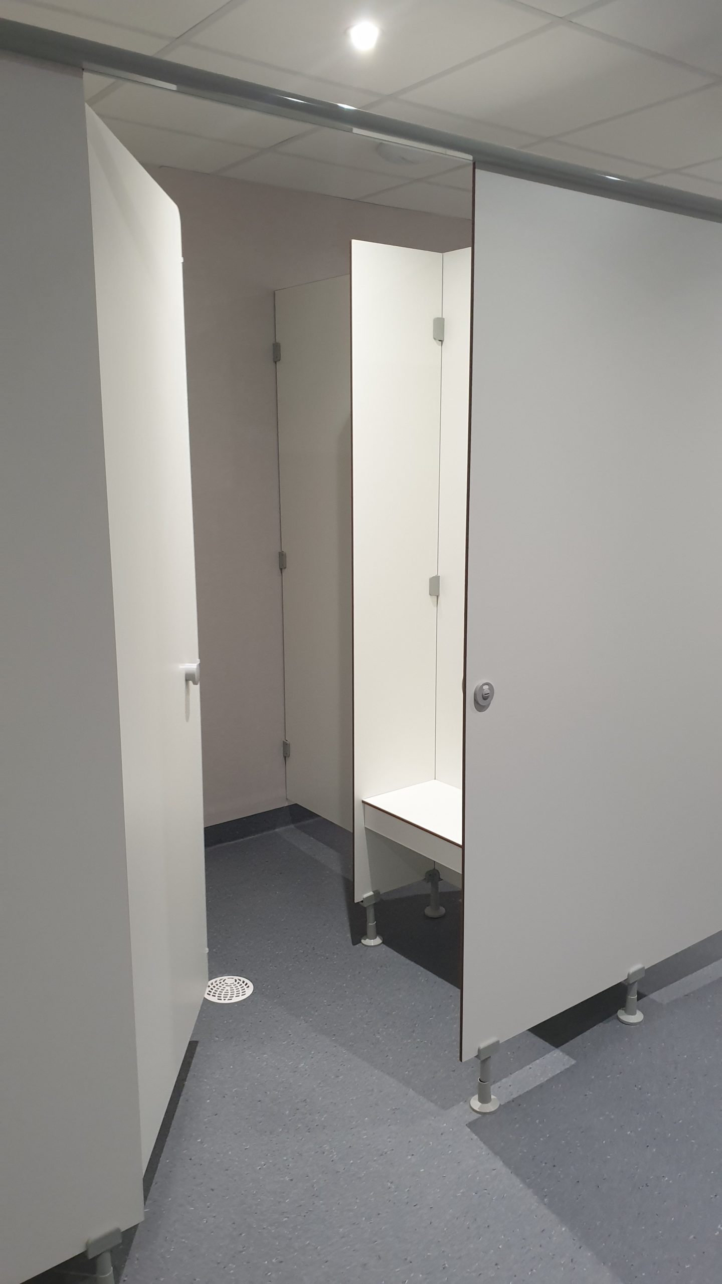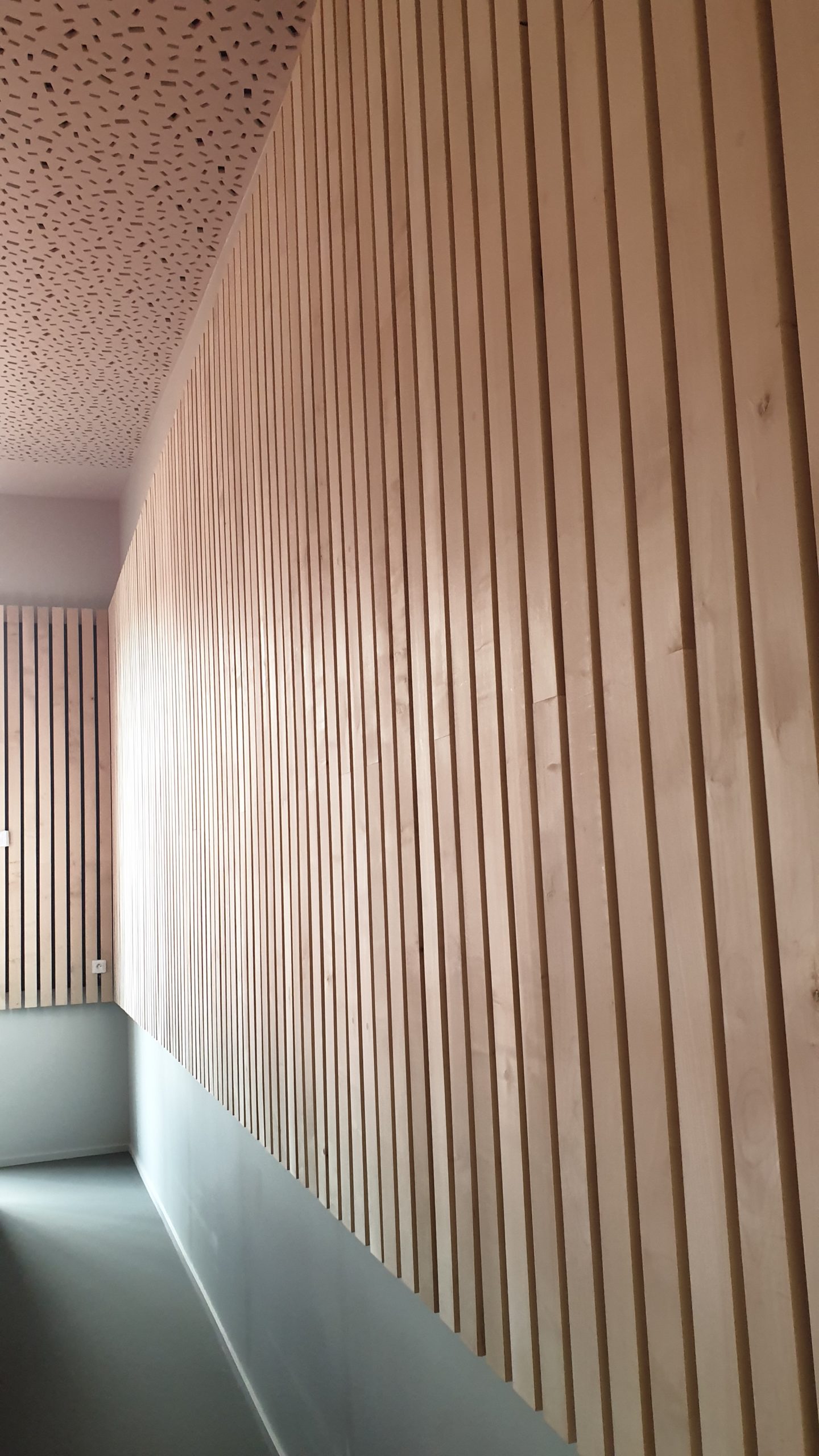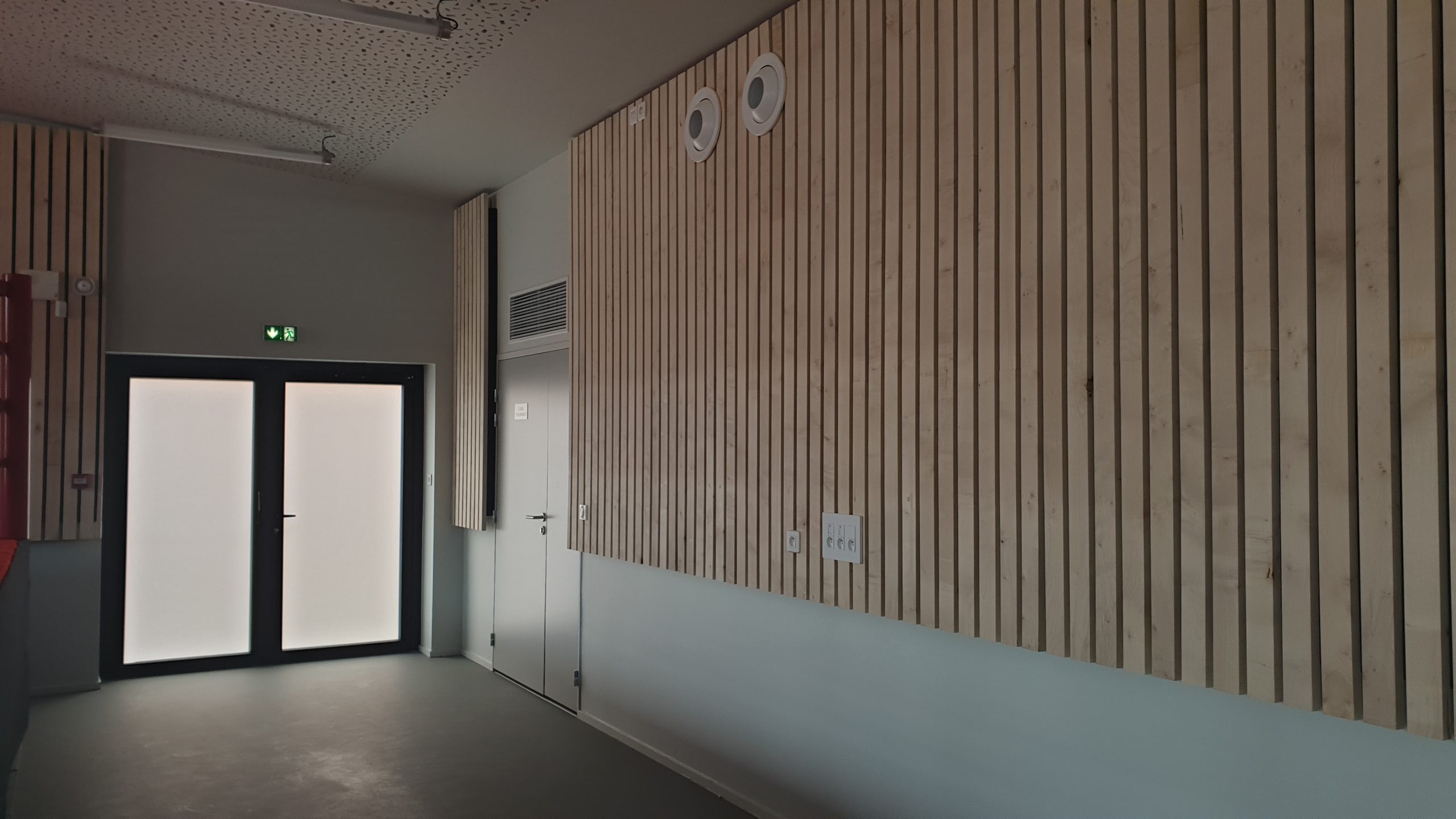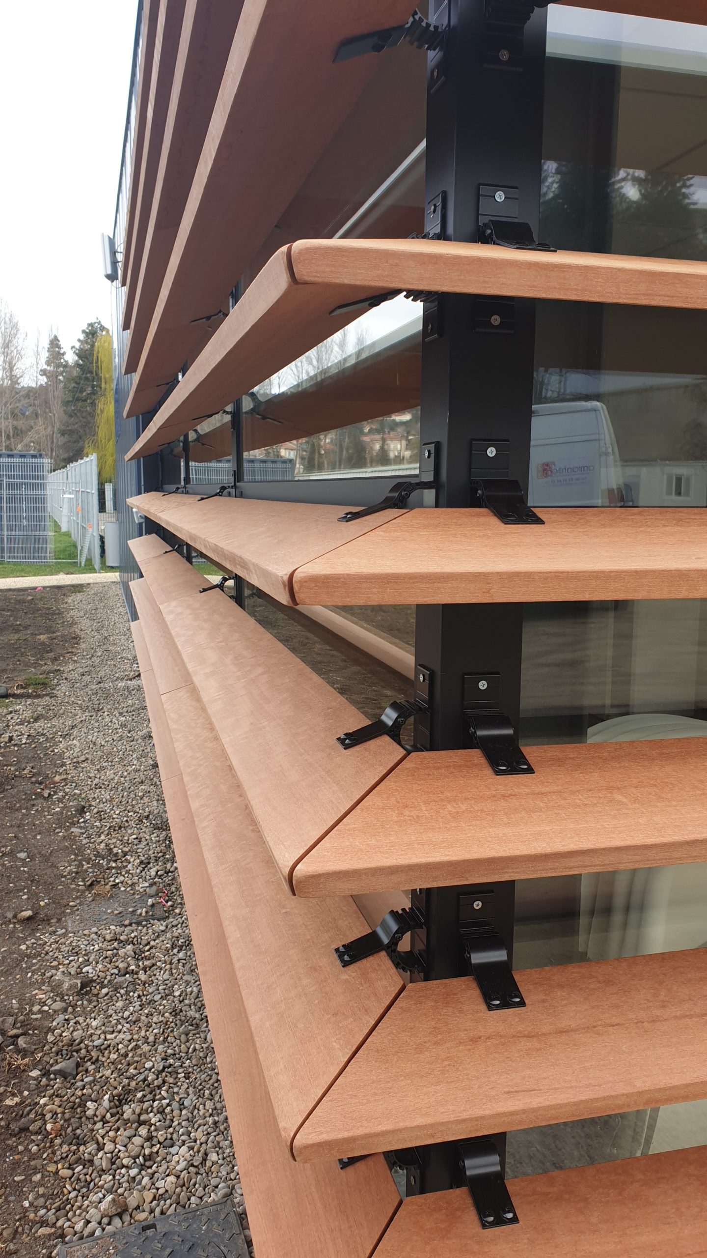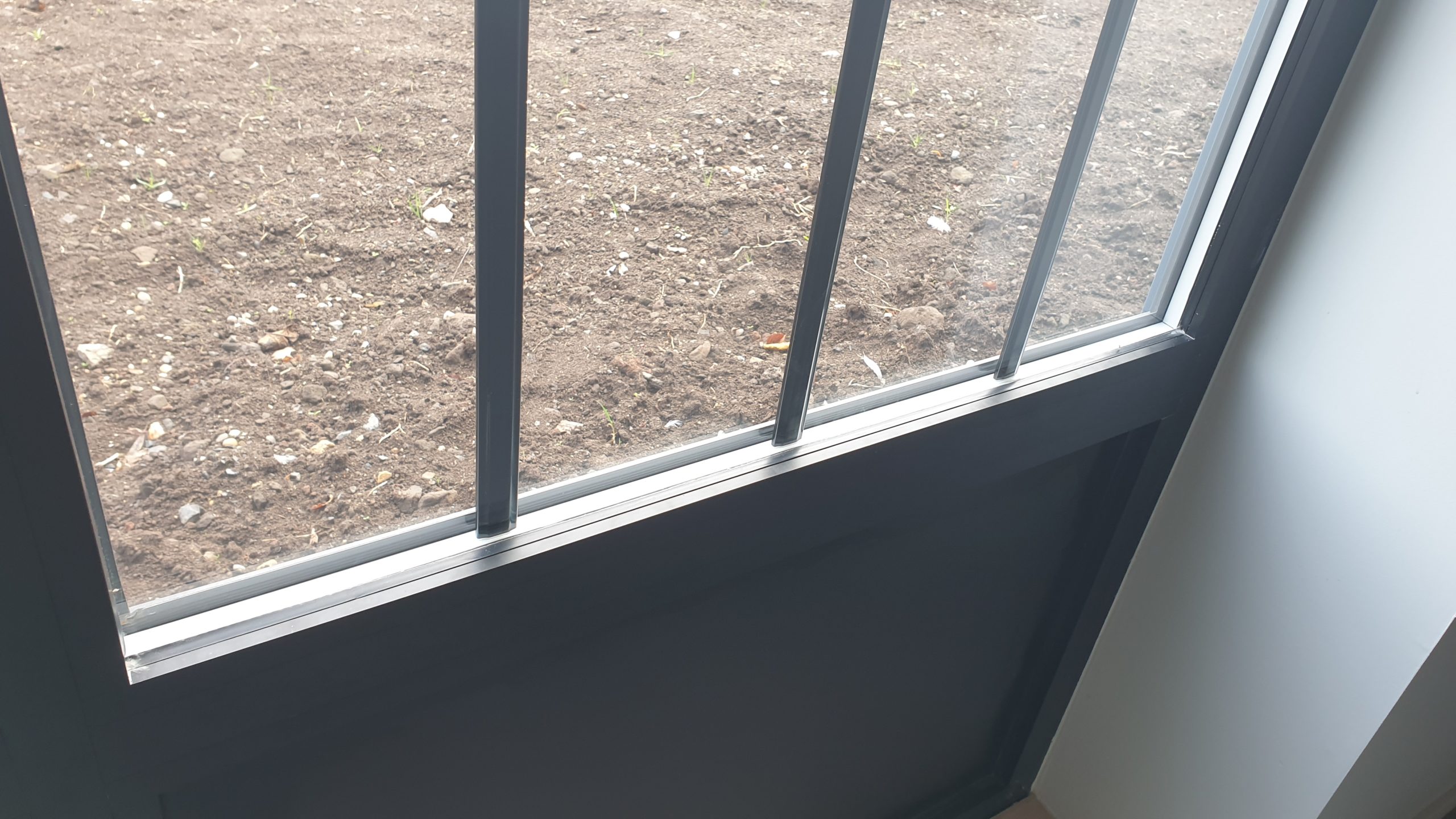 Travaux complets en menuiserie aluminium : habillage extérieur en alu, BSO fixes pour le confort thermique, et aménagement intérieur avec cloisons sanitaires, habillages muraux et châssis vitrés. Un projet alliant fonctionnalité et esthétisme.