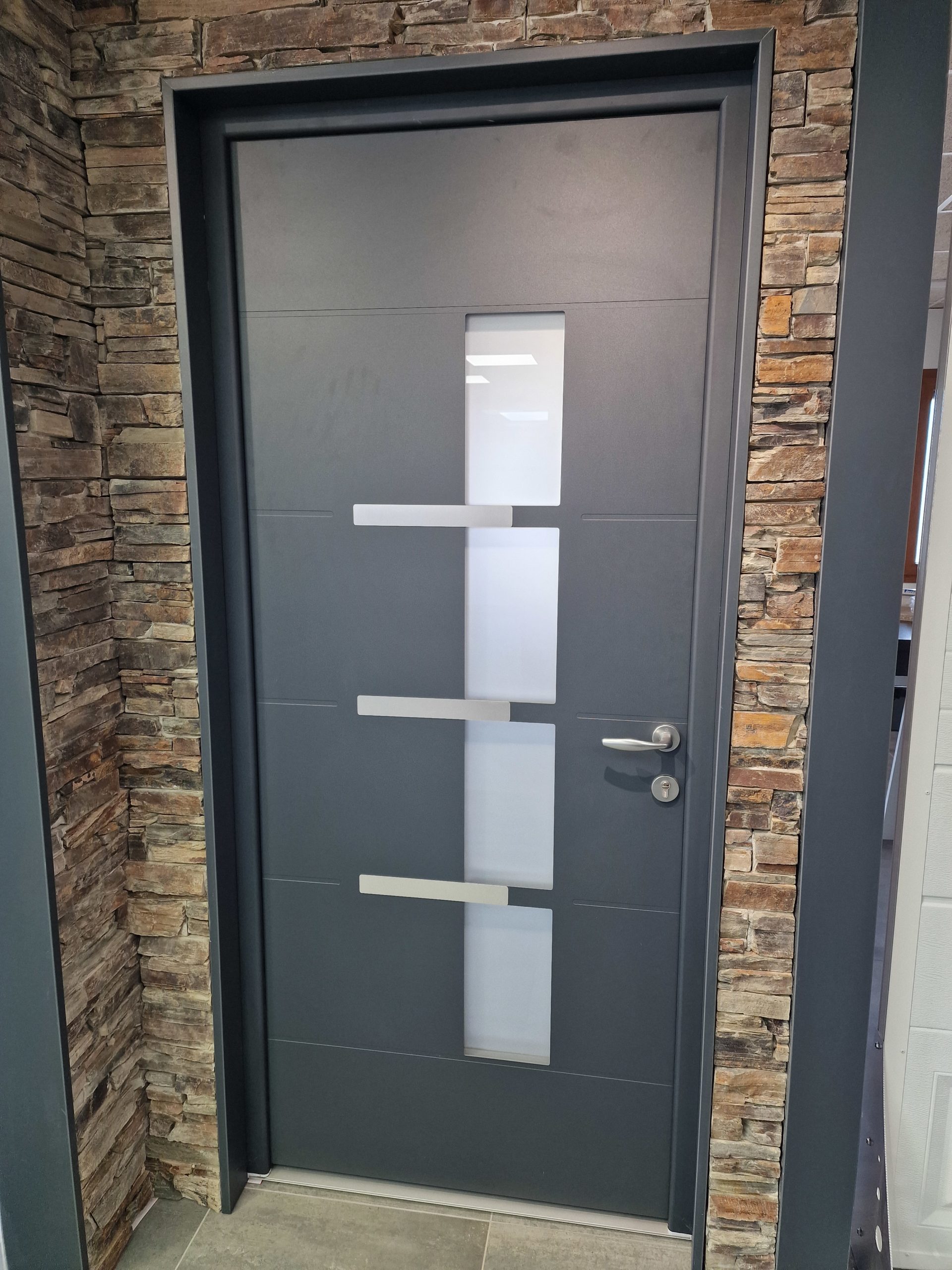 A l’inverse de la porte monobloc en aluminium fabriquée d’un seul tenant, la porte à panneau est une fabrication de porte traditionnelle dans nos ateliers, avec insertion d’un panneau indépendant dans l’ouvrant. Elle peut être en aluminium mais aussi en PVC, en bois ou en mixte bois/aluminium.