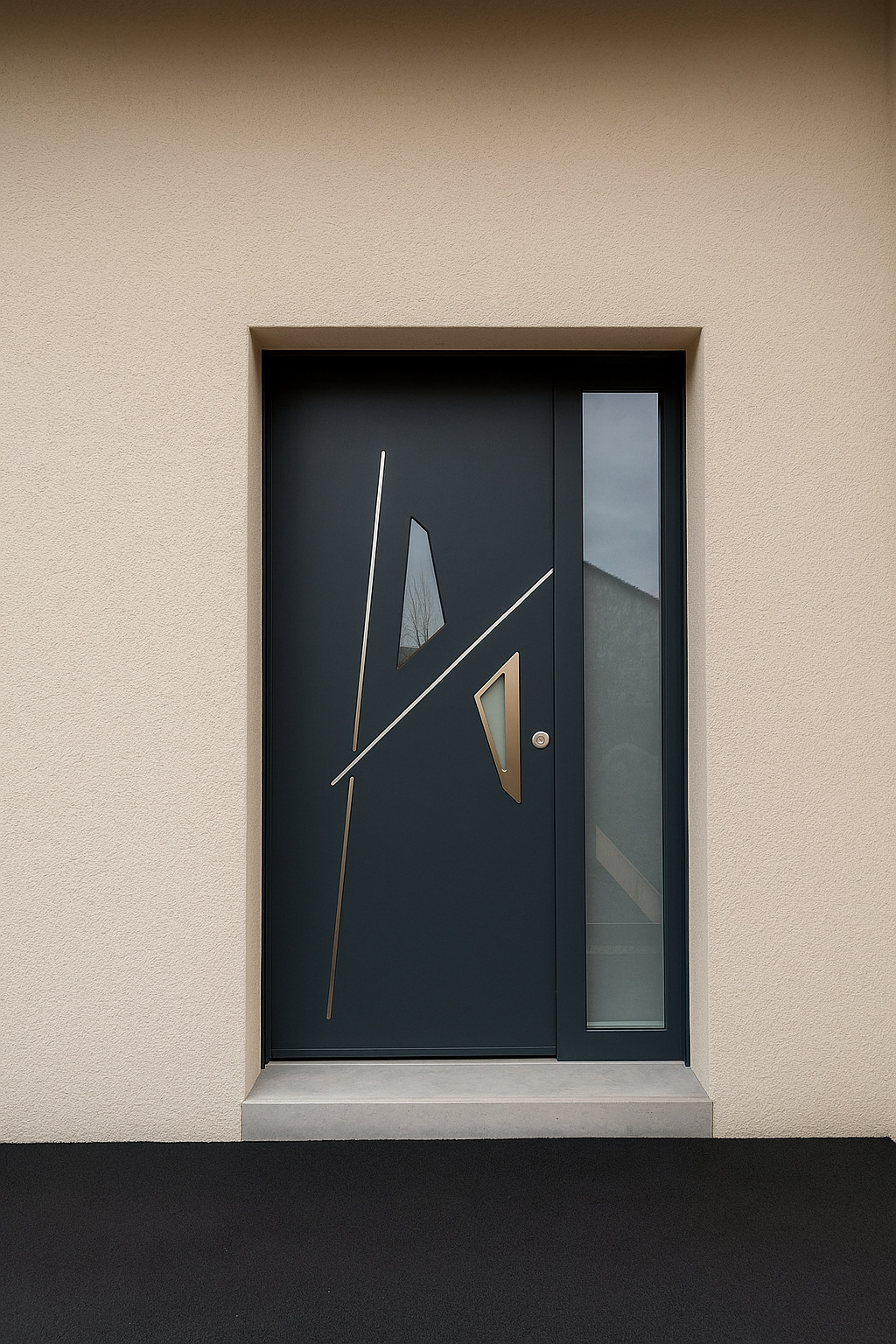 La porte d’entrée monobloc en aluminium offre un design moderne et épuré, grâce à son ouvrant conçu d’un seul tenant, tout en apportant une sécurité maximale à votre entrée. La surface extérieure lisse et les lignes verticales fines soulignent le caractère sobre et architectural de la porte.