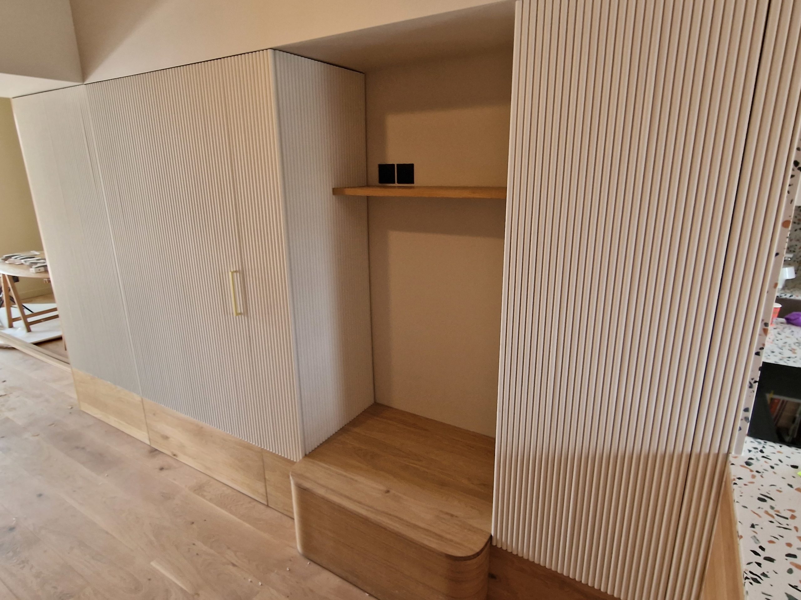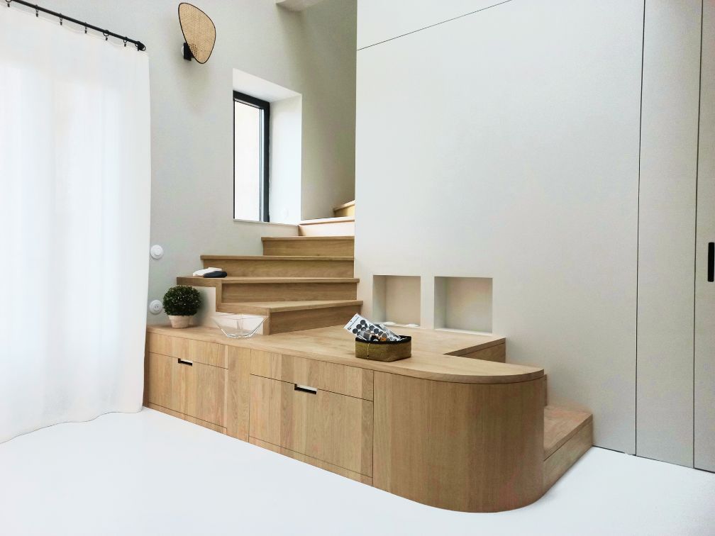 Nos menuiseries intérieures sont conçues sur-mesure pour s’adapter parfaitement à vos besoins et à votre espace. Chaque projet est unique, qu’il s’agisse de rangements, de meubles ou d’agencements spécifiques, avec des solutions personnalisées pour chaque style.